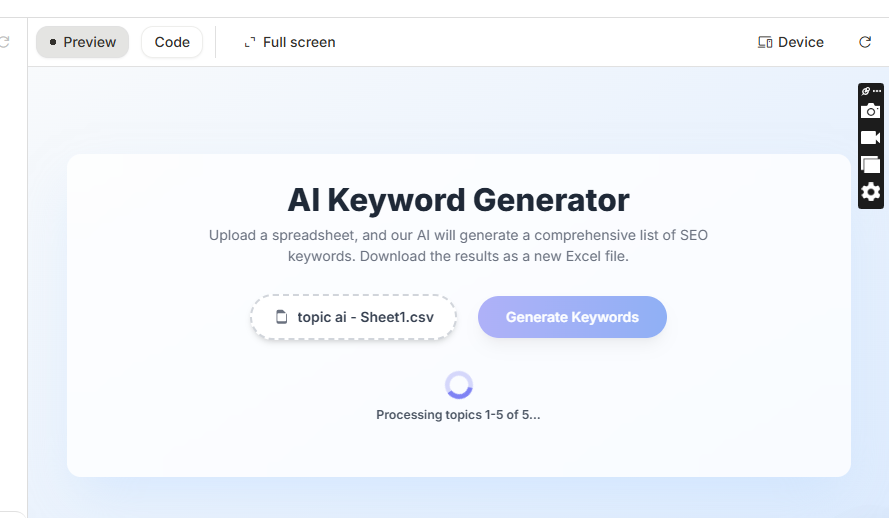 This AI Keyword Generator Tool is built for real marketers who want accuracy without spending hours in manual keyword research. Upload your topic list, click once, and let the tool handle the rest.